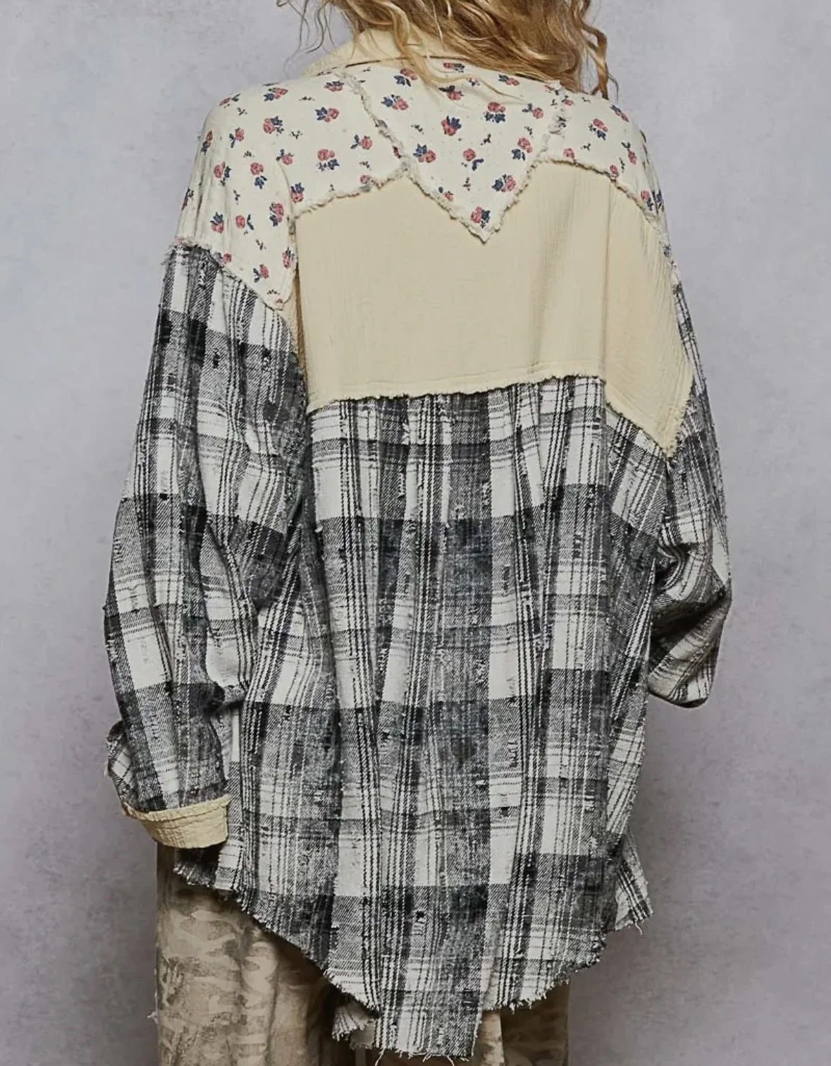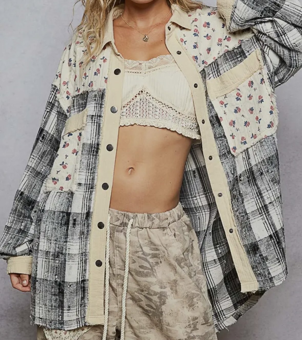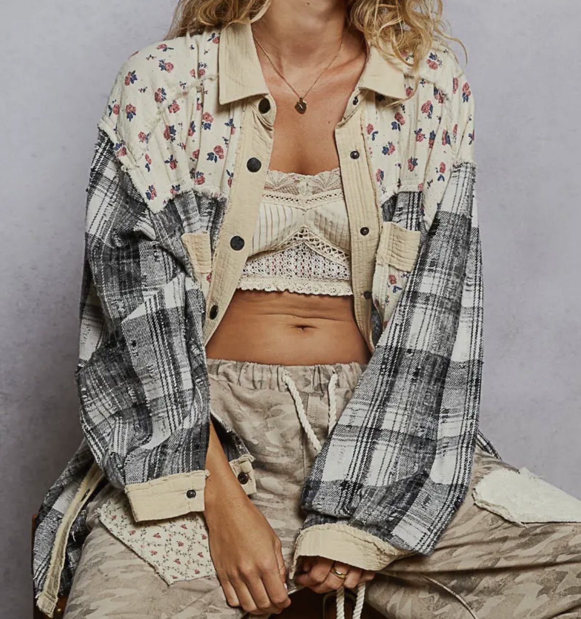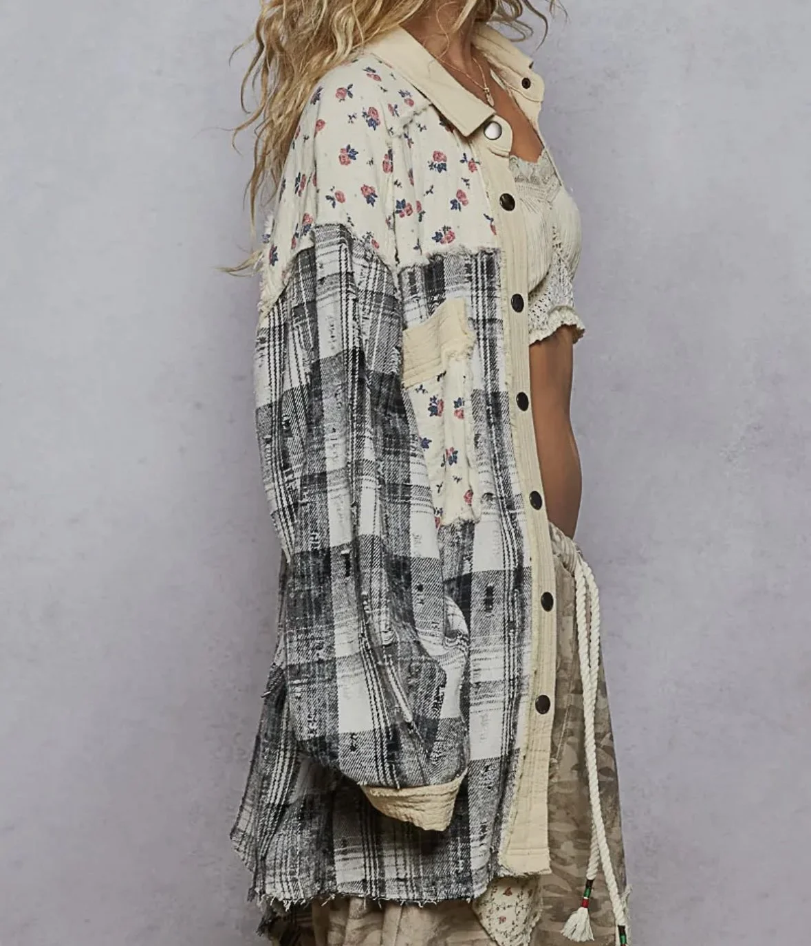 Bold leopard and color block patchwork stands out with baggy fit offering relaxed comfort, Dolman sleeves for stylish flair.